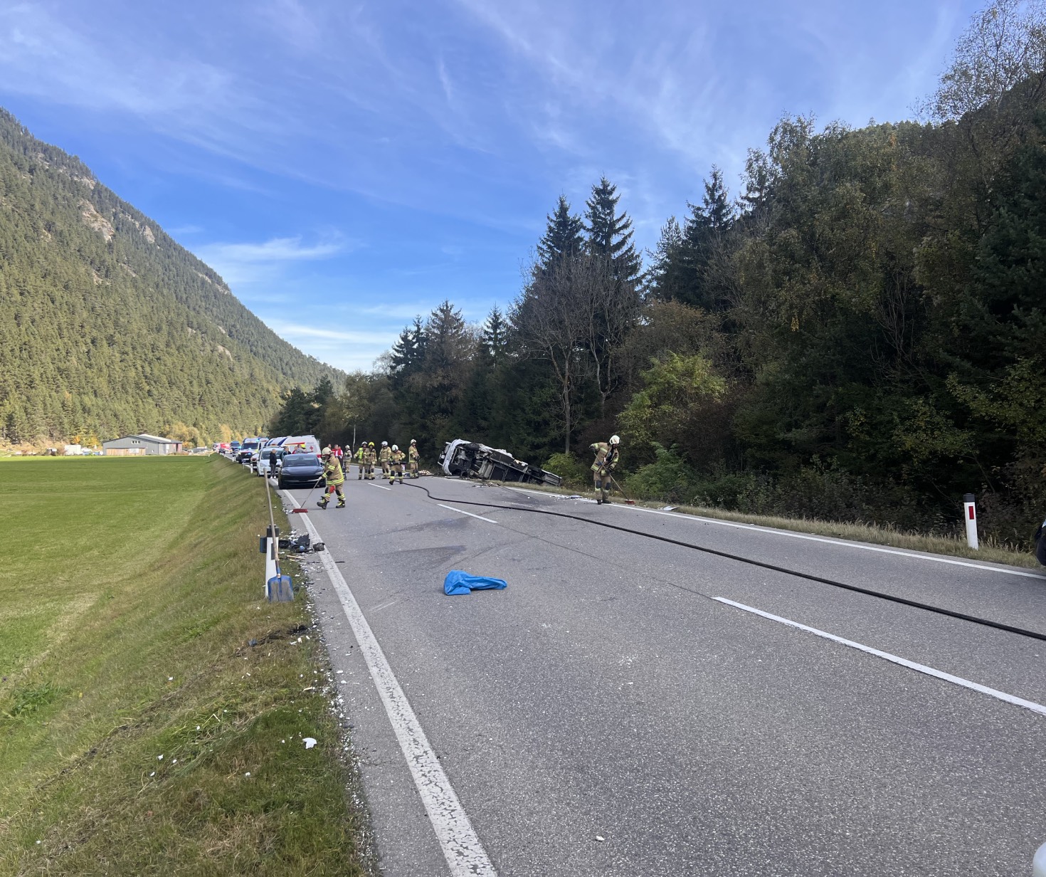 Am 10. Oktober 2025 wurde die Feuerwehr Pfunds um 10:35 Uhr zu einem schweren Verkehrsunfall auf der B180 Reschenbundesstraße im Bereich Lafaiers alarmiert.