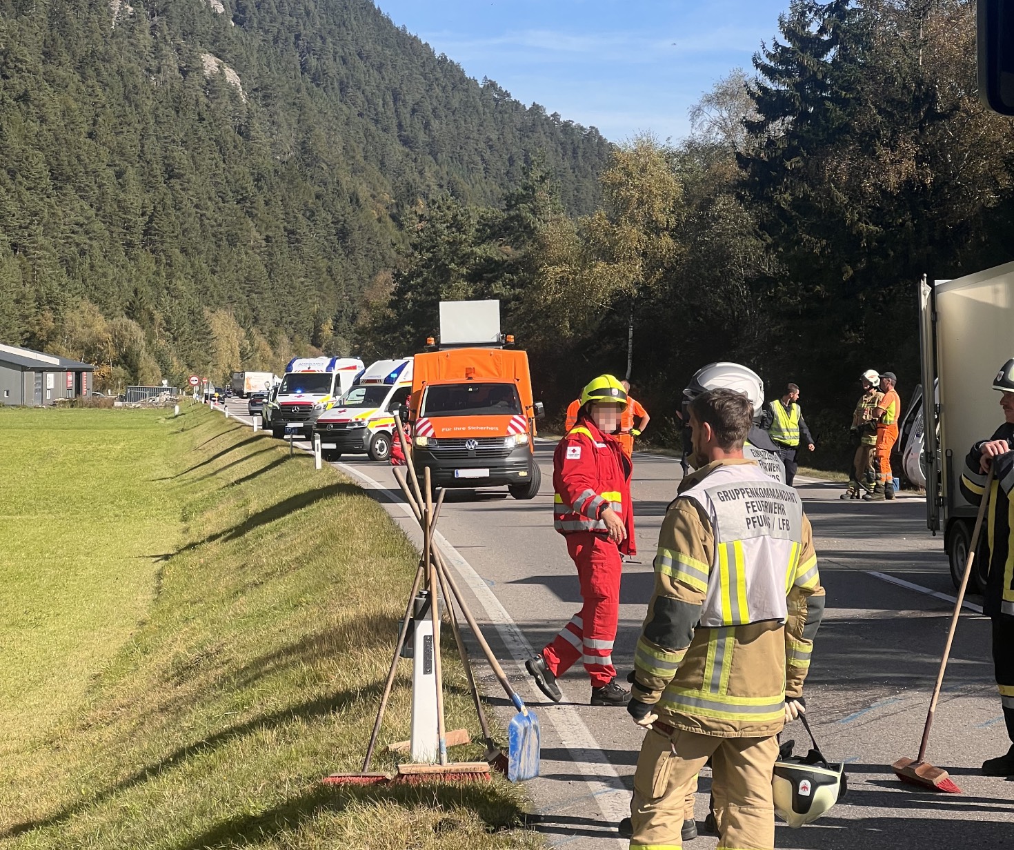 Am 10. Oktober 2025 wurde die Feuerwehr Pfunds um 10:35 Uhr zu einem schweren Verkehrsunfall auf der B180 Reschenbundesstraße im Bereich Lafaiers alarmiert.