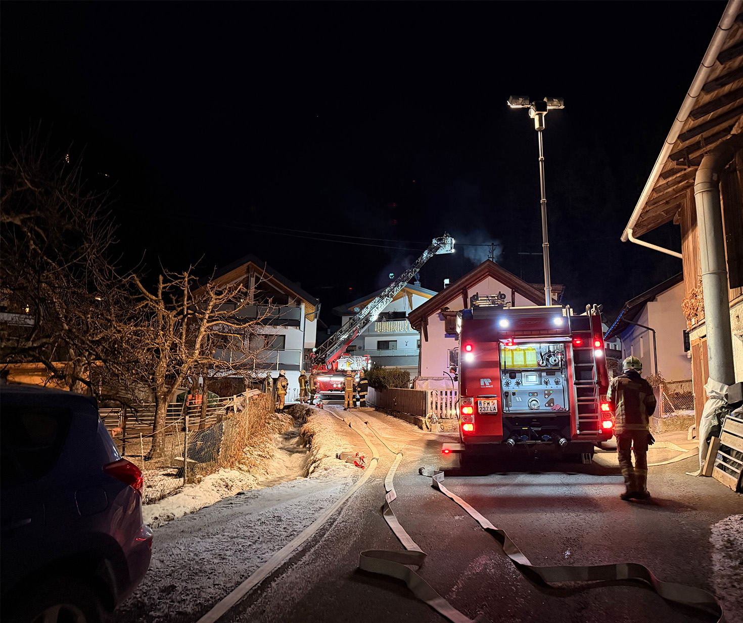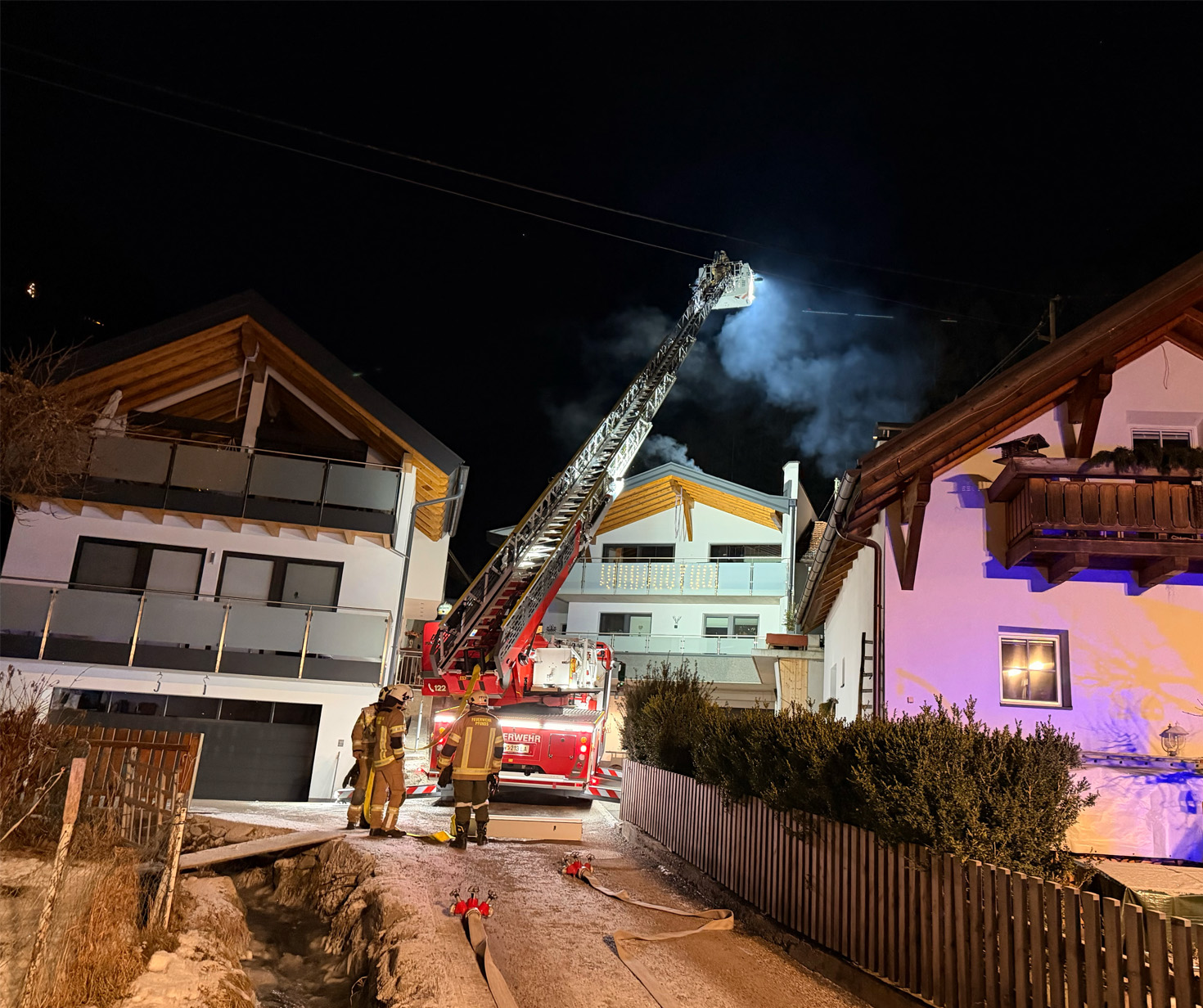 Am 31.12.2025 wurde die Freiwillige Feuerwehr Pfunds um 21:18 Uhr zu einem Kaminbrand im Dorf alarmiert.